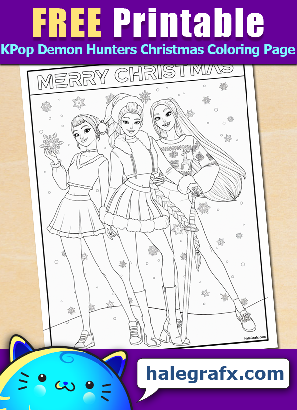 It would be fun to have a KPop Demon Hunters movie night during Christmas time and have a coloring contest with this Free Printable KPop Demon Hunters Christmas Coloring Page. You can download your free printable KPop Demon Hunters Christmas coloring page below!