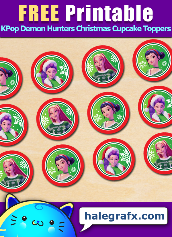 Free Printable KPop Demon Hunters Christmas Cupcake Toppers