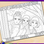 This Free KPop Demon Hunters coloring page features Rumi and Derpy Tiget and would be a great activity for a KPop Demon Hunters birthday party, or you can color with your friends while you watch the movie and have a coloring contest! You can download your free printable KPop Demon Hunters Easter coloring page below!
