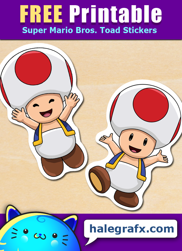 These free stickers have been optimized to print then cut on machines such as a Cricut Air, Silhouette Cameo, or Starcraft Solo on vinyl sticker paper. You can also use them for scrapbooking, sticker collecting, party favors, on party favor bags, or sticking to whatever suits you. You can certainly cut them by hand, but these have been formatted so a cutting machine can read the lines and cut it for your you. Perfect for you, your friends or your kids who love Toad, video games, Kawaii, Super Mario Bros. Bros, and Nintendo. These free toad stickers are optimized to print at approximately 2.75 x 2.25 inches, but can be resized.