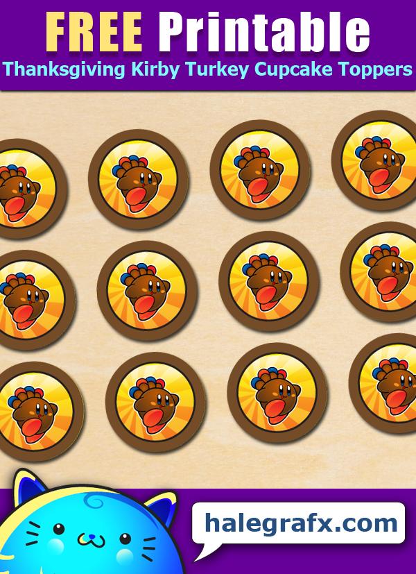 Free Printable Thanksgiving Kirby Turkey Cupcake Toppers