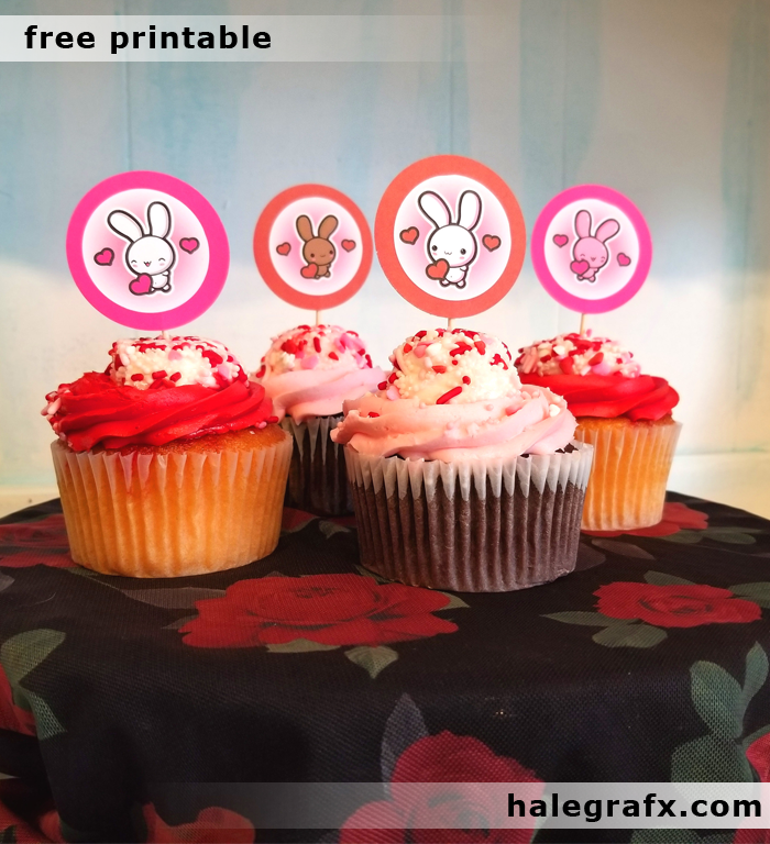 FREE Printable Valentine’s Day Bunny Cupcake Toppers